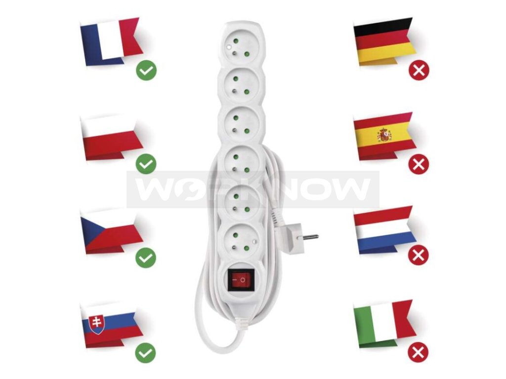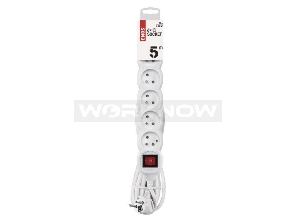 Prodlužovací kabel 5 m / 6 zásuvek / s vypínačem / bílý / PVC / 1 mm2