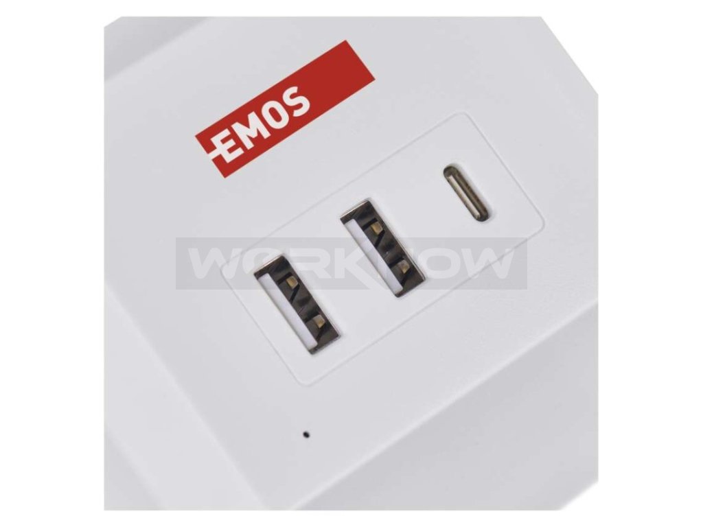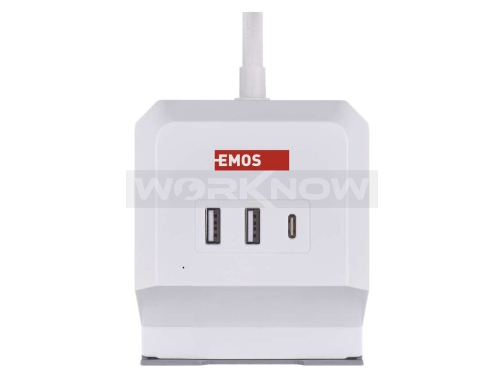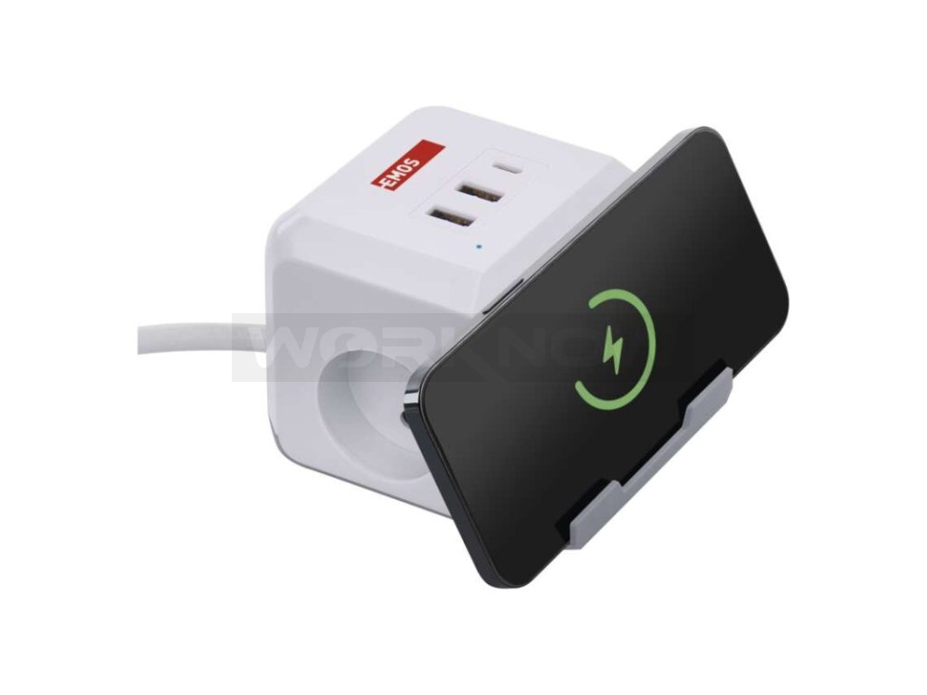 Prodlužovací kabel - kostka 2 m / 2 zásuvky / bílý / 2×USB-A + 1×USB-C+Qi / 1,5 mm2