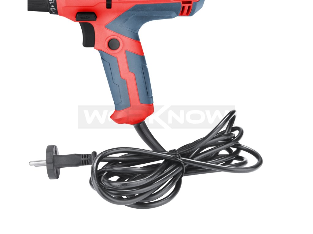 Elektrický dvourychlostní vrtací šroubovák je určen k vrtání bez příklepu do dřeva a kovu a k utahování nebo povolování šroubových spojů. Vrtací šroubovák v sobě spojuje velký utahovací moment standardního vrtacího aku šroubováku (akuvrtačky) s výdrží a stabilním výkonem elektrického nářadí napájeného z elektrické sítě. Elektrický vrtací šroubovák napájený z elektrické sítě je vhodný pro delší práce v dosahu elektrické zásuvky. Díky absenci akumulátoru a nabíječky tak lze mít výhody silné aku vrtačky za výrazně nižší cenu.- nižší hmotnost než u aku vrtacích šroubováků snižuje únavu zejména při dlouhodobější práci