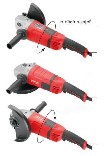 - pohodlná pogumovaná rukojeť a ručka - nastavitelné podle druhu práce nebo úchopu - ve třech polohách, bezpečnostní pádlový spínač s pojistkou
