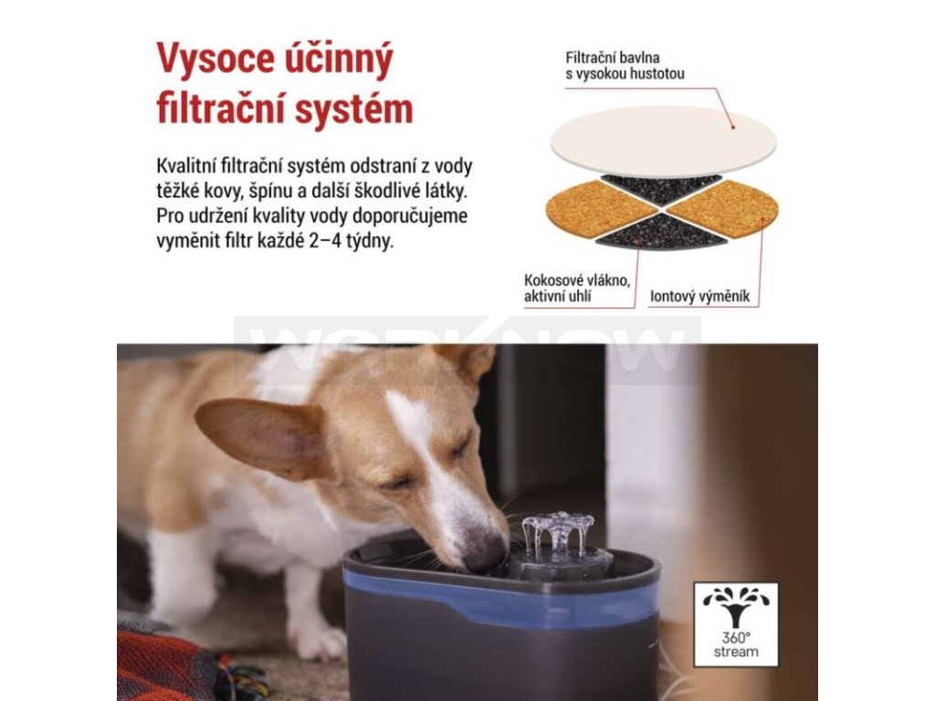 | obsah balení: | fontána, napájecí adaptér, přívodní kabel, čerpadlo, filtr k čerpadlu, bavlněný filtr, kartáček na čištění |