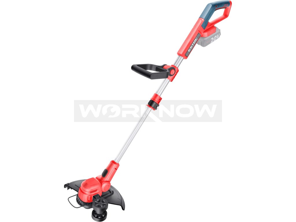 Strunová sekačka je ideální pro údržbu zahradního trávníku, úpravu jeho okrajů a sekání trávy na těžko přístupných místech, jako jsou obrubníky, prostory pod lavičkami, kolem stromů a keřů, kde není možné použít pojízdnou sekačku. Sekací hlava umožňuje nastavení úhlu a otočení o 90°, což usnadňuje práci podél chodníků, příjezdových cest a dalších hran. Rukojeť lze prodloužit až o 26 cm, a proto sekačku pohodlně ovládají lidé všech výšek. Strunu lze prodloužit manuálně stiskem tlačítka na hlavě nebo poloautomaticky během sekání. Ochranný kryt je vybaven nožem, který automaticky zastřihává strunu na správnou délku. Díky bateriovému napájení odpadá starost o napájecí kabel, sekačka je lehčí, snadno ovladatelná a velmi tichá, což oceníte zejména při sekání v hustě obydlených oblastech nebo brzy ráno. Pogumovaná rukojeť zajišťuje bezpečný a pohodlný úchop, tlumí vibrace a zabraňuje vyklouznutí. Vytahovací distanční oblouk usnadňuje sekání podél plotů, zdí a stromů a zároveň šetří strunu. Údržba sekačky je minimální – díky moderní konstrukci není potřeba pravidelně mazat ani se starat o složité servisní úkony. Pro běžné použití postačí jeden nebo dva 2Ah akumulátory, které lze rychle dobít v rychlonabíječce. Pro náročnější nebo delší práci doporučujeme akumulátory s vyšší kapacitou 4–8Ah. Akumulátor je vybaven indikátorem nabití a je kompatibilní se všemi nástroji řady EXTOL SHARE20V. Díky Li-ion technologii jej můžete dobíjet kdykoli bez obav o snížení kapacity. Li-ion akumulátory se samovybíjením ztrácejí energii velmi pomalu, zůstávají dlouho nabité a vždy připravené k použití.- záběr 30cm