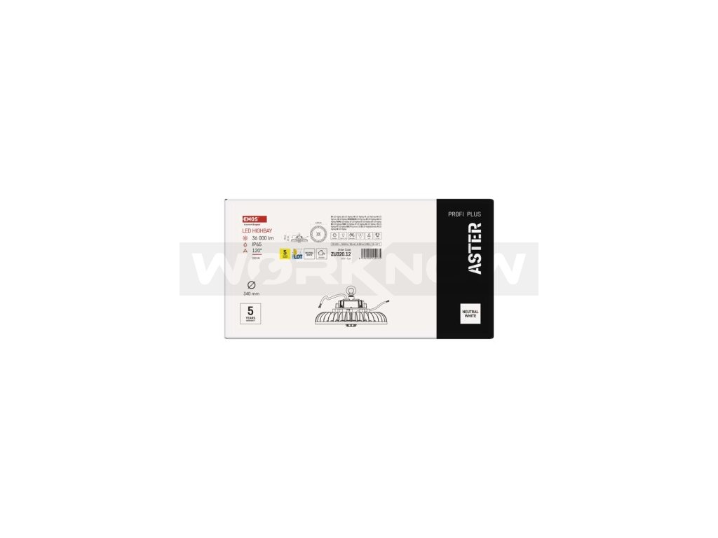 Zajistěte si optimální osvětlení pro vaše prostory s highbay svítidlem ASTER. Prémiové LED čipy Osram dodávají svítidlu velmi vysokou světelnou účinnost 180 lm/W a dlouhou životnost. Vynikající výkon a kvalita světla (CRI > 80) vám pomohou ozářit velké prostory jako sklady, výrobní či sportovní haly apod.