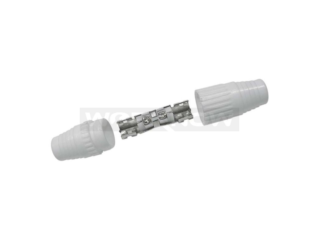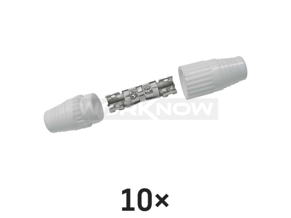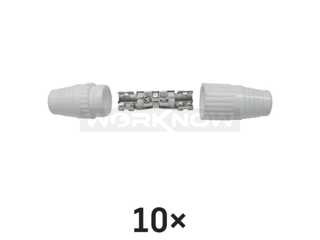 IEC spojka určená k nadstavení koaxiálního kabelu a má bílou barvu. Spojka se prodává po 10 ks.