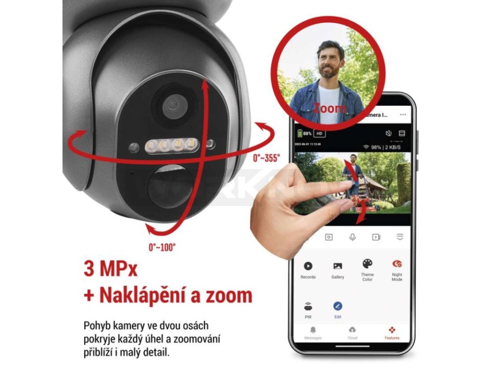 - rozlišení kamery 3MPx pro kvalitní obraz a přiměřenou spotřebu dat