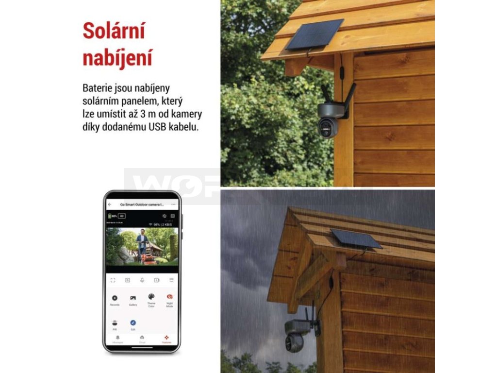 | napájení kamery: | Li-ion baterie 10 400 mAh + solární panel + Adaptér DC 5 V/1 A (součást balení) |