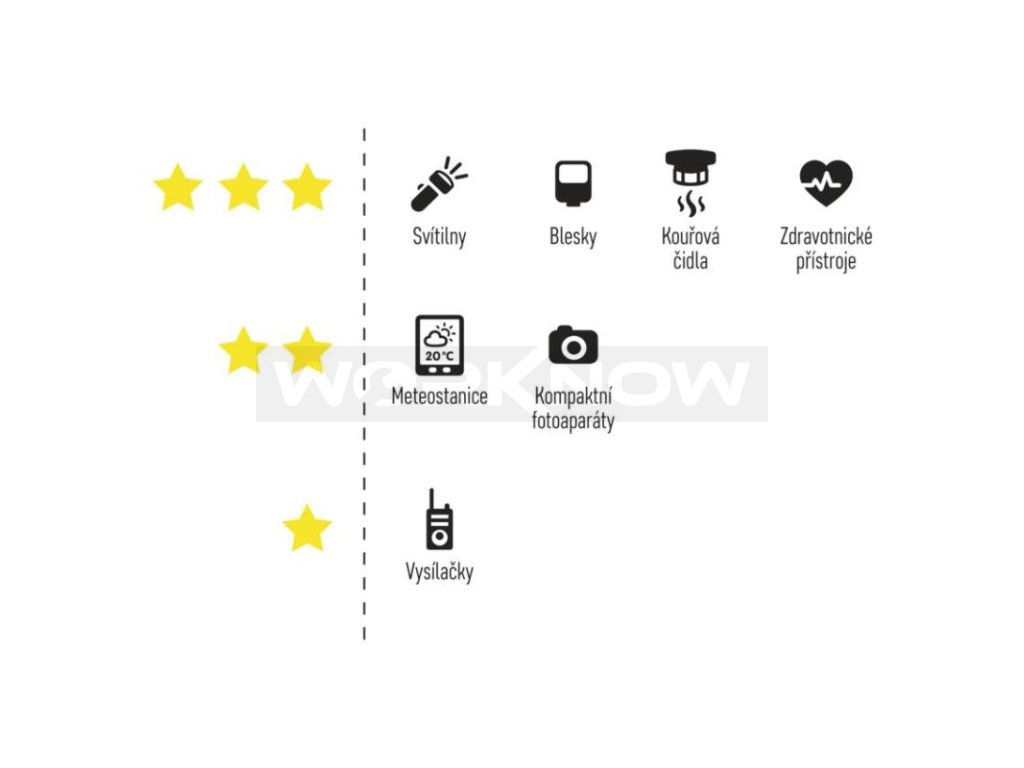 Extrémně široký rozsah provozních teplot od -40 °C do +60 °C dává možnost použití téměř při jakýchkoliv venkovních podmínkách. Určené zejména pro náročná fotografická a další zařízení jako např. psí obojky.