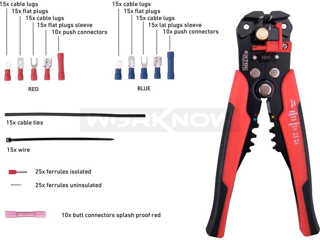 Kleště odizolovací/krimpovací a koncovky, sada 231ks, 210mm/0,2-6mm2Doplňkové parametry