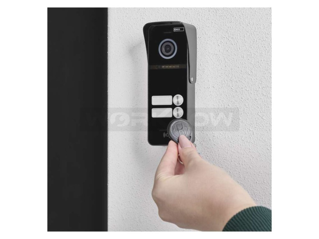Hlavním bonusem kamerové jednotky je integrovaná čtečka RFID. V balení najdete 5 čipů, které vám otevřou dveře bez nutnosti vytahovat klíče – stačí čip přiložit ke kamerové jednotce. Pokud by vám 5 ks nestačilo, lze další čipy dokoupit. Samozřejmostí je možnost umístění jmenovek pro 1–4 nezávislé uživatele (dle zvoleného modelu).