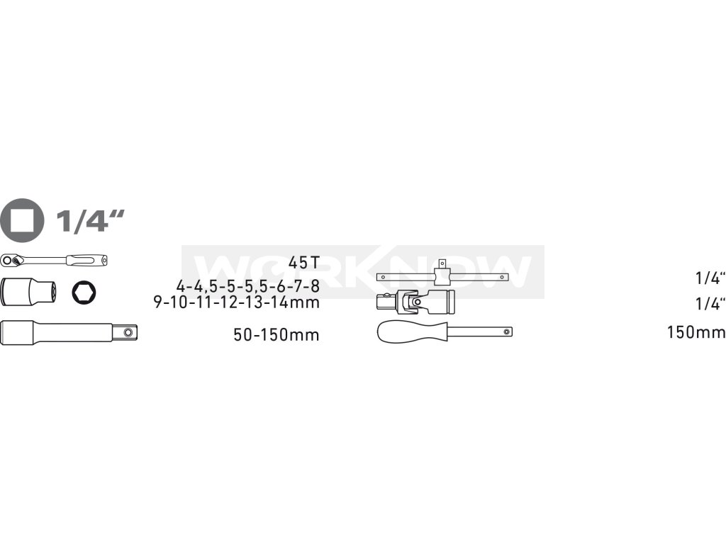 | Hlavice nástrčné: | 1/4": 4-4.5-5-5.5-6-7-8-9-10-11-12-13-14mm |