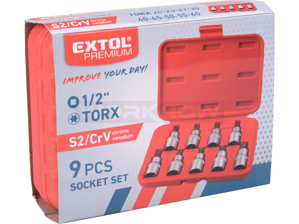 Hlavice zástrčné TORX, sada 9ks, 1/2", CrV/S2