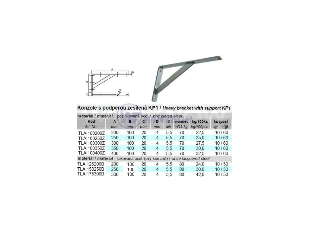 Konzole s podpěrou KP1, 100x300x20mm
