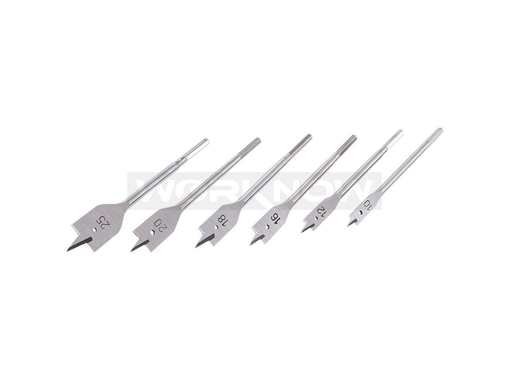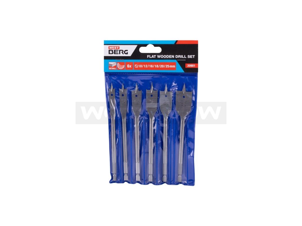 Sada kopinatých vrtáků 10, 12, 16, 18, 20, 25 mm, použití: pro vrtání otvorů do měkkého i tvrdého dřeva, uchycení: šestihranná stopka - zamezuje protáčení, balení: PVC pouzdro.