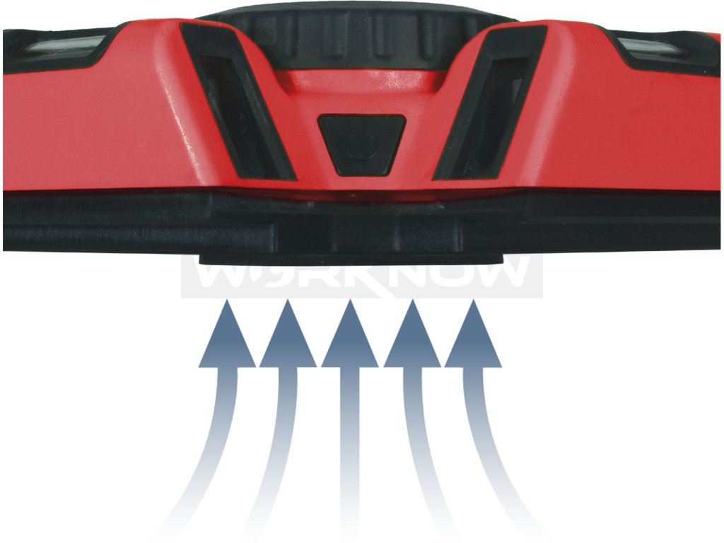 - laserový úhelník je vybaven elektrickým přísavným modulem se sacím výkonem cca 2l/min; plně nabitý přístroj v pracovním módu (s oběma zapnutými laserovými liniemi), se tak dokáže na neporézních materiálech udržet po dobu až 3hodin; bez zapnutého přísavného modulu dokáže plně nabitý přístroj (s oběma zapnutými liniemi) pracovat po dobu max. 7hodin