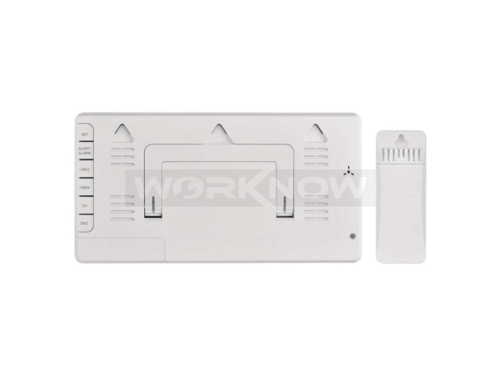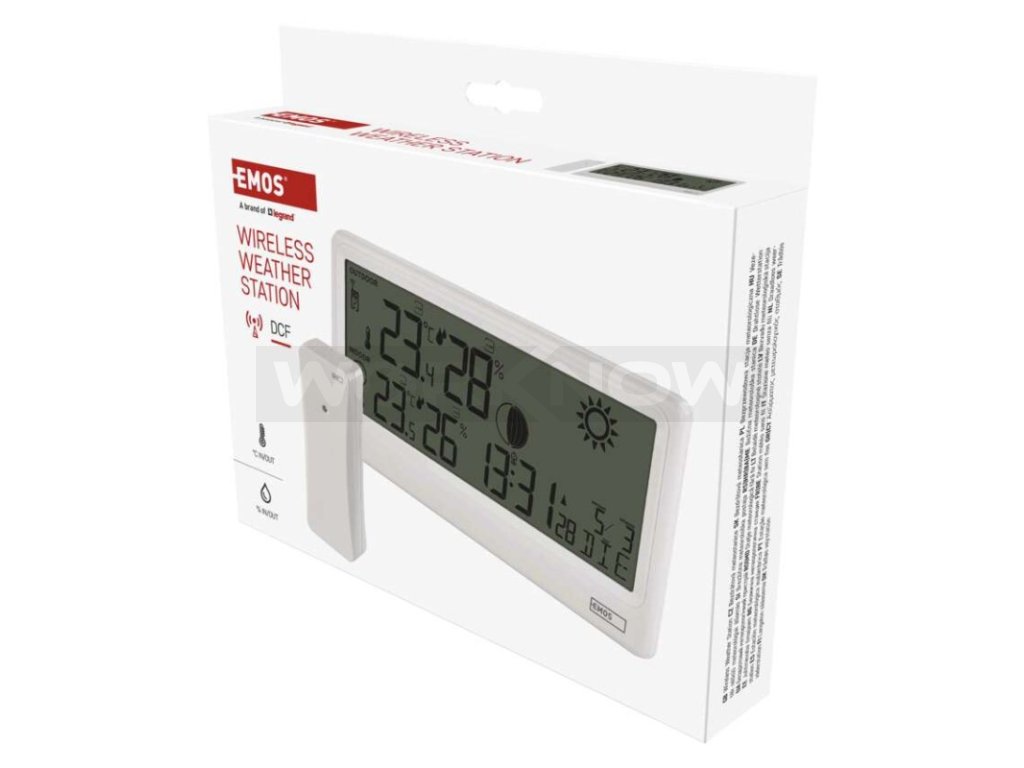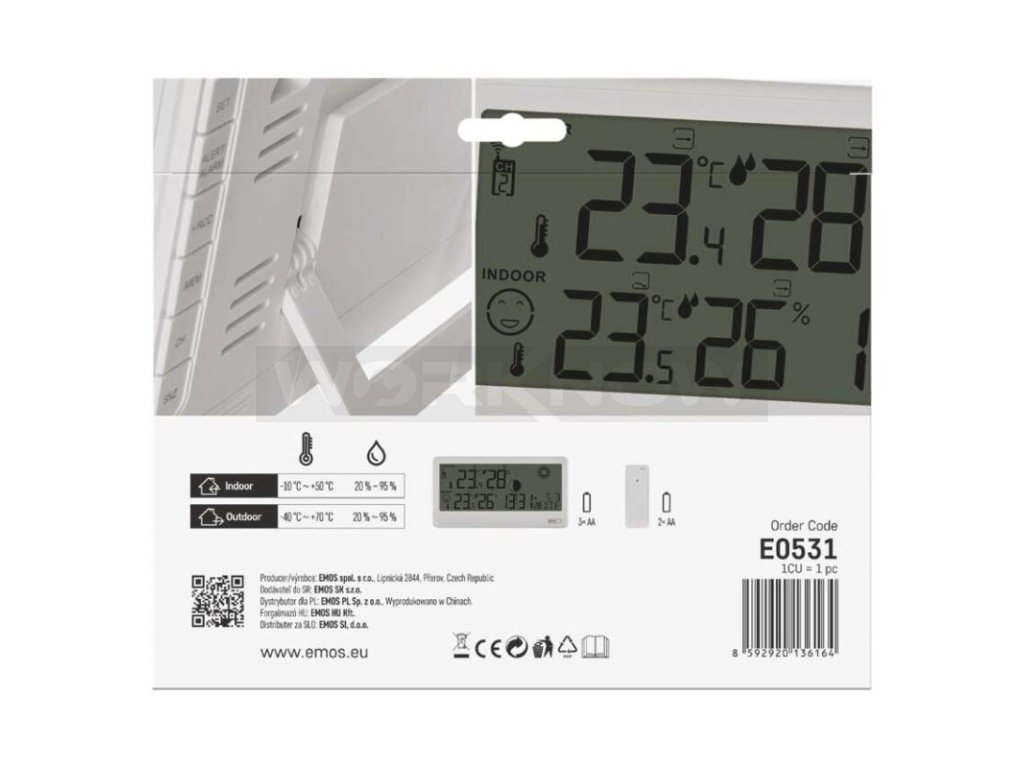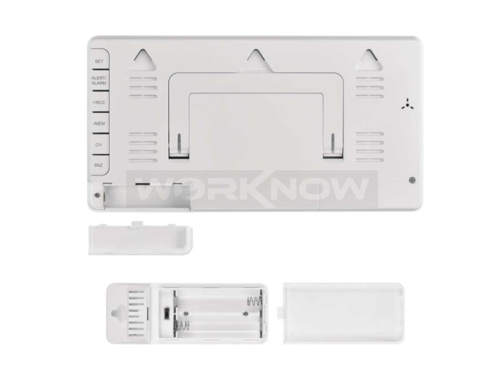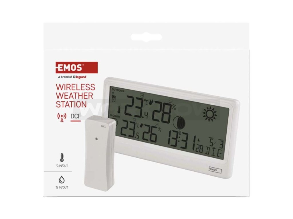 Měří vnitřní a venkovní teplotu a vlhkost.Možnost pověsit na zeď i postavit na stůl.indikace slabých baterií.