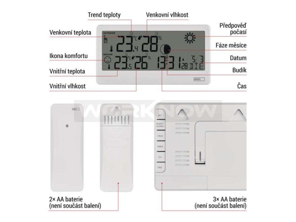 napájení stanice: 3× 1,5 V AA (nejsou součástí balení)