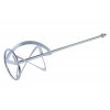 Míchadlo - pravotočivé (míchací účinek odspodu nahoru) - metla, pozinkované, rozměr: M14 120 x 600 mm - M14, použití: pro těžké materiály s vysokou viskozitou, malty, betony, cementové a vápenné omítky, spojovací hmoty, mazaniny, epoxidové pryskyřice, živičné vrstvy.
