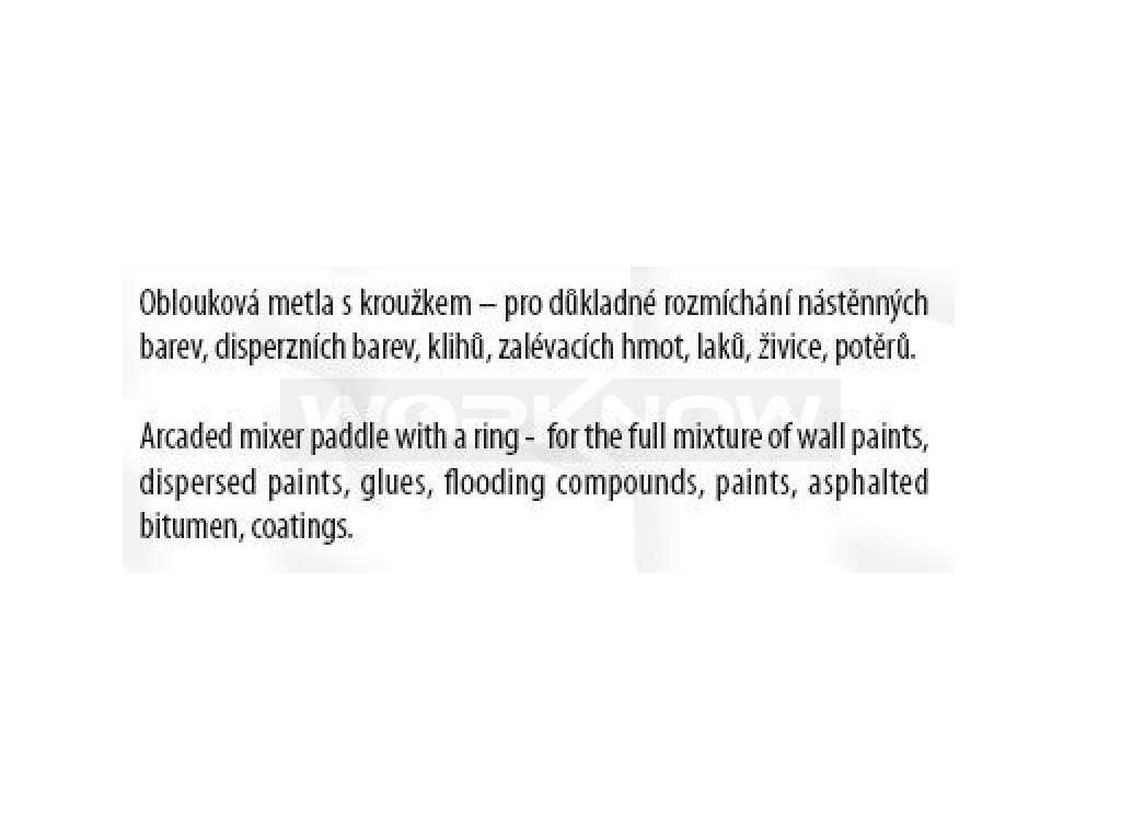 Míchadlo s kruhem (metla), lakované, rozměr: 60 x 400 mm - šestihran, použití: pro rozmíchání nástěnných barev, disperzních barev, klihů, zalévacích hmot, laků, živice, potěrů.Doplňkové parametry