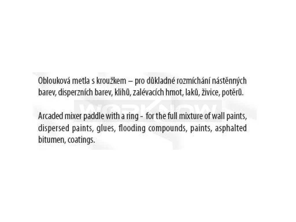 Míchadlo s kruhem (metla ), pozinkované, rozměr: 60 x 400 mm - šestihran, použití : pro rozmíchání nástěnných barev, disperzních barev, klihů, zalévacích hmot, laků, živice, potěrů.