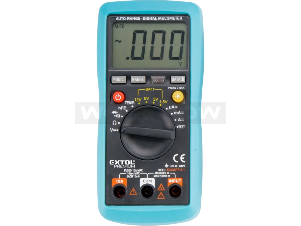 | Doplňující parametr: | rozsah měření: DC napětí 200mV-600V, AC napětí 2V-600V, DC a AC proud 200µA-10A, odpor 200Ω-20MΩ, teplota -20°C-1000°C, test bat |