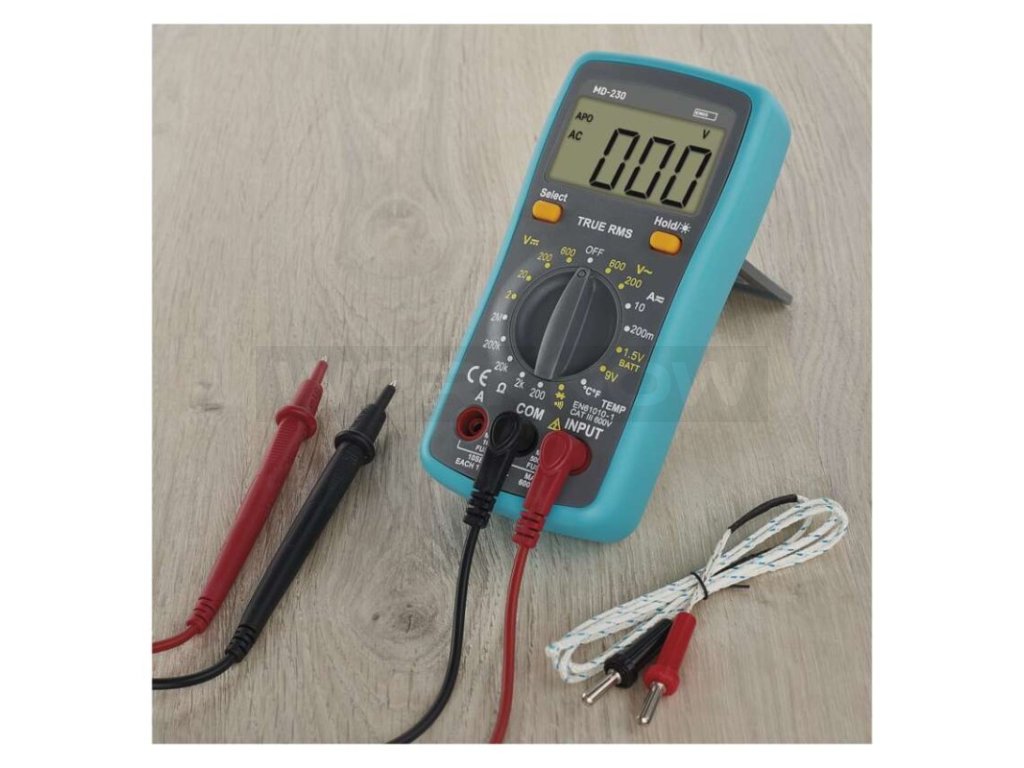 Díky podsvícenému displeji není problém s multimetrem MD-230 pracovat i za zhoršených světelných podmínek. Nastavení rozsahu měřených hodnot se provádí manuálně. Díky funkci True RMS dokáže přístroj přesně změřit efektivní hodnoty libovolných střídavých nesinusových signálů proudu a napětí.