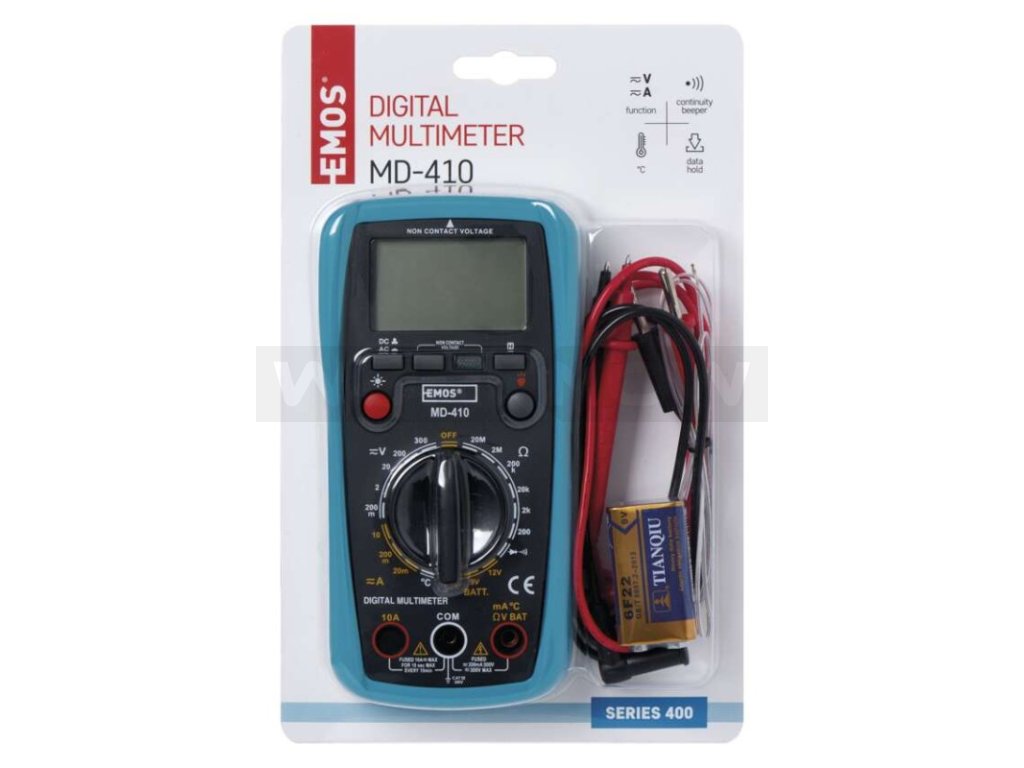 Multimetr MD-410 umožňuje měření stejnosměrného i střídavého proudu a hodnot napětí až 300 V.