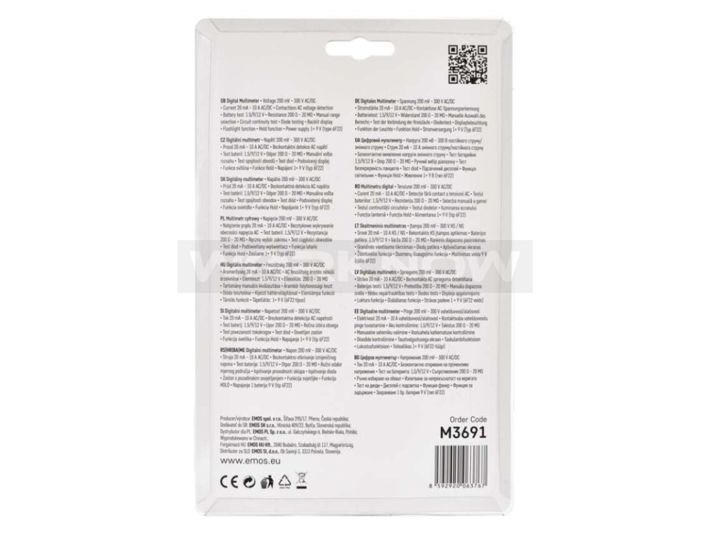| Součást dodávky: | baterie, návod, měřicí hroty |