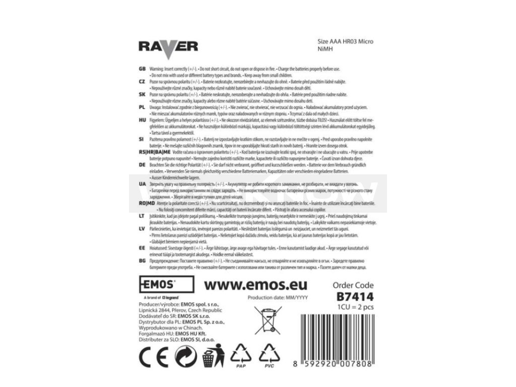 Nabíjecí baterie do solárních lamp RAVER SOLAR AAA (HR03) 400 mAh, 2 ks