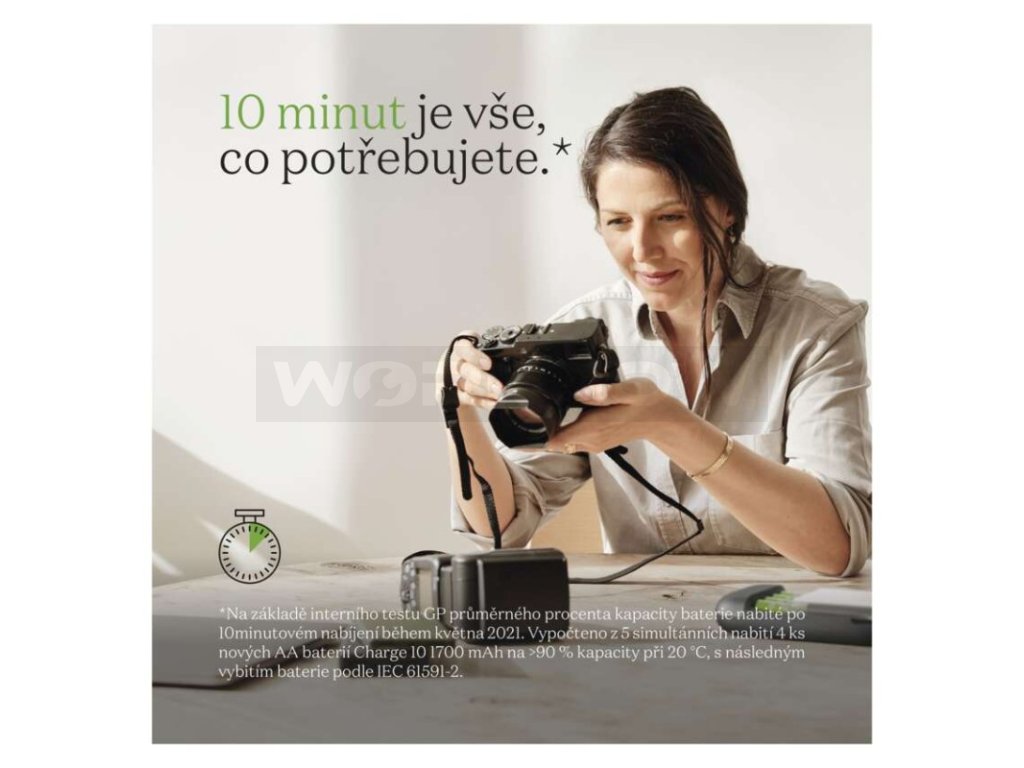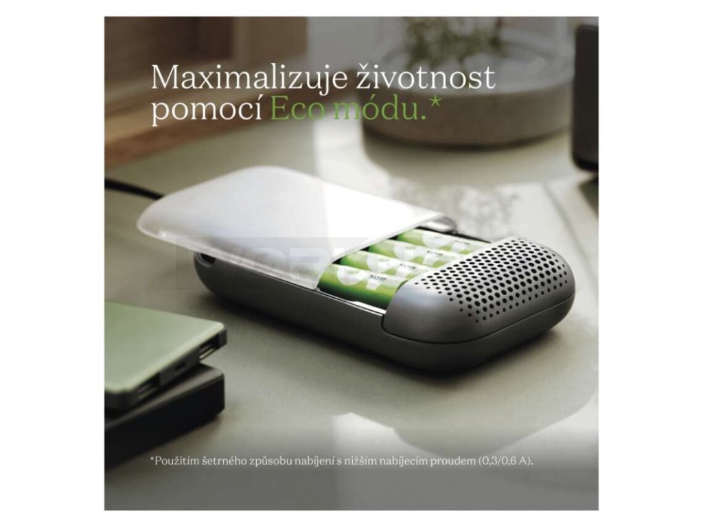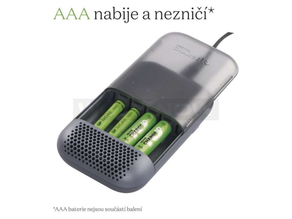 Nechcete zatěžovat životní prostředí opakovaným nákupem jednorázových baterií, ale zdlouhavé nabíjení vás obtěžuje? S GP Recyko Charge 10, nejrychlejší nabíječkou na světě, budou vaše baterie spolehlivě nabité během 10 minut. Nabíječka vás navíc potěší ochranou proti přehřátí, ECO módem pro šetrné nabíjení NiMH baterií, plně automatickým inteligentním nabíjením a maximálně tichým provozem. Součástí nabíječky, která si hravě poradí se všemi druhy AA i AAA baterií, jsou navíc 4 ekologicky vyráběné AA baterie s kapacitou 1 700 mAh pro rychlé nabíjení, jež vydrží více než 700 nabíjecích cyklů.