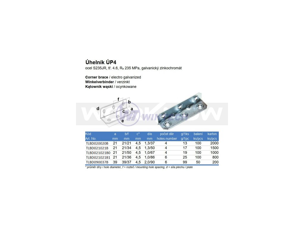 Úhelník nábytkový UP4, 20x20x37x1mm, ZB