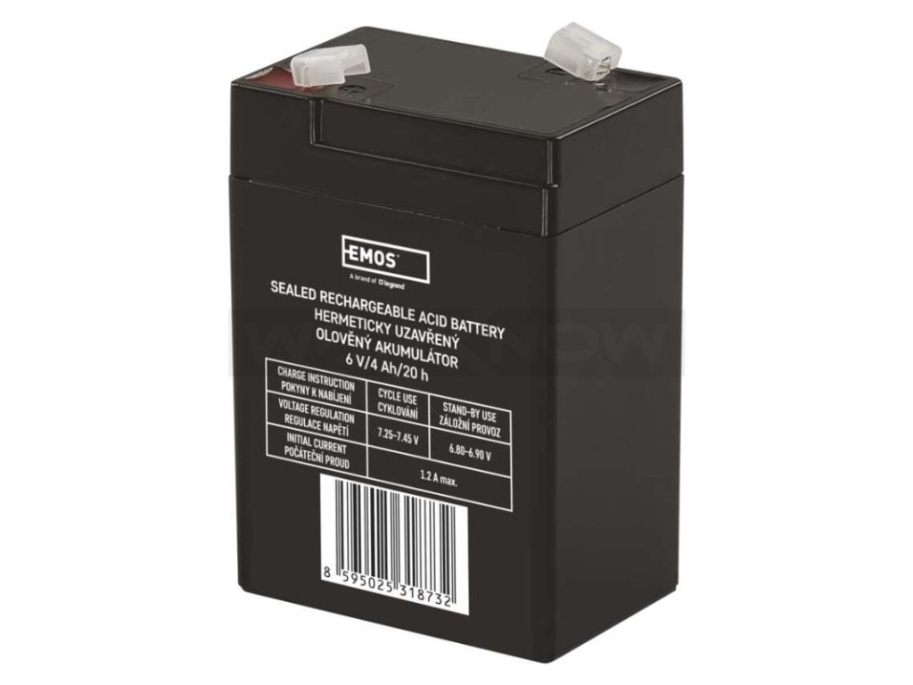 Akumulátor EMOS je vhodný jako náhradní baterie pro svítilny, dětské vozítka, nouzové osvětlení apod. Bezúdržbový, ventilem řízený olověný akumulátor v provedení AGM umožňuje být používán v libovolné poloze.