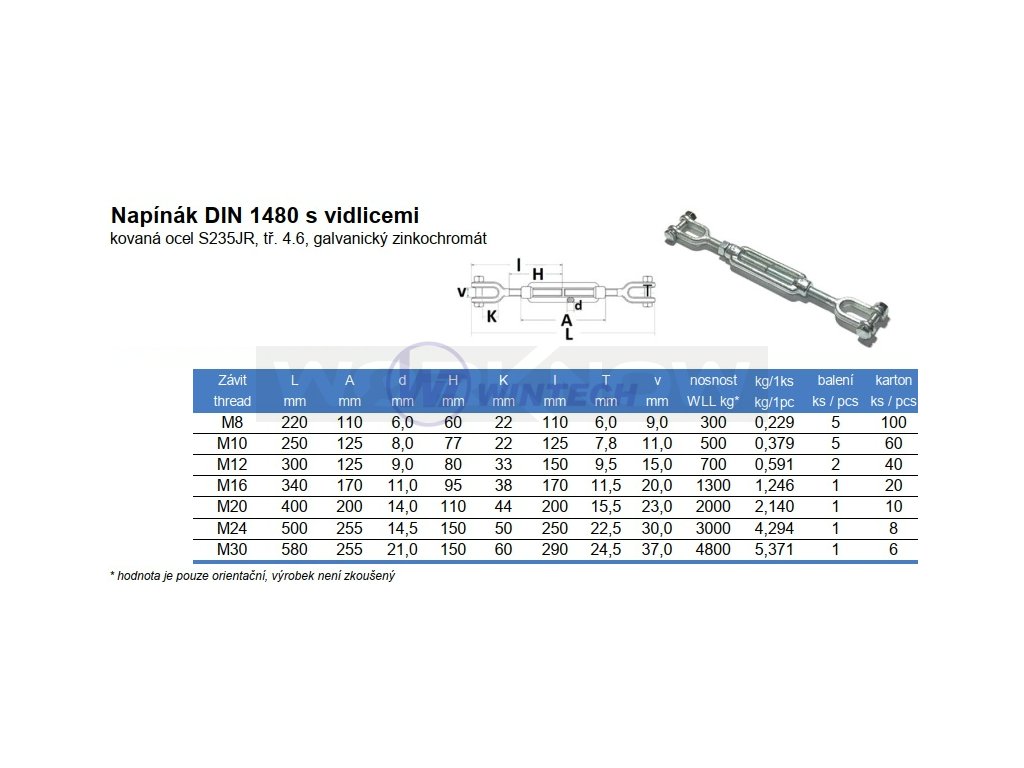 Napínák DIN 1480 s vidlicemi M16, ZB, 1 ks