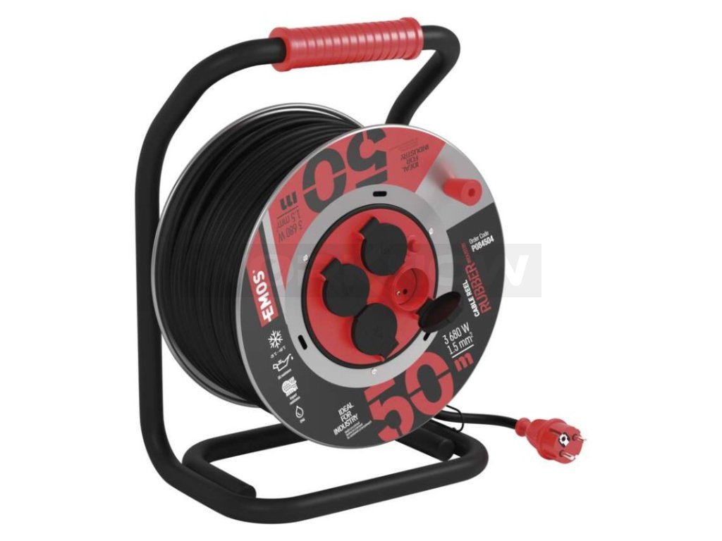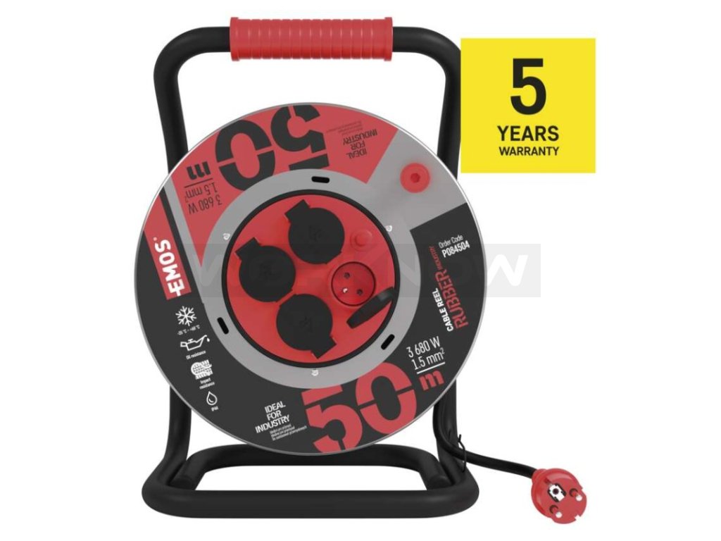 Spolehlivý prodlužovací kabel s průřezem 1,5 mm² odolá vodě, vlhku a studeným i horkým teplotám od -25 °C do +60 °C. Nabízí tak mnoho možností profesionálního využití například ve stavebnictví nebo zemědělství, kde dochází ke střednímu až velkému mechanickému namáhání. Výhodou je zapojení až čtyř elektrických zařízení současně a stupeň krytí IP44. Snadné navíjení kabelu zajišťuje vodící oko a robustní kovové tělo navijáku, které společně zaručují dlouhou životnost a snadnou manipulaci při práci.