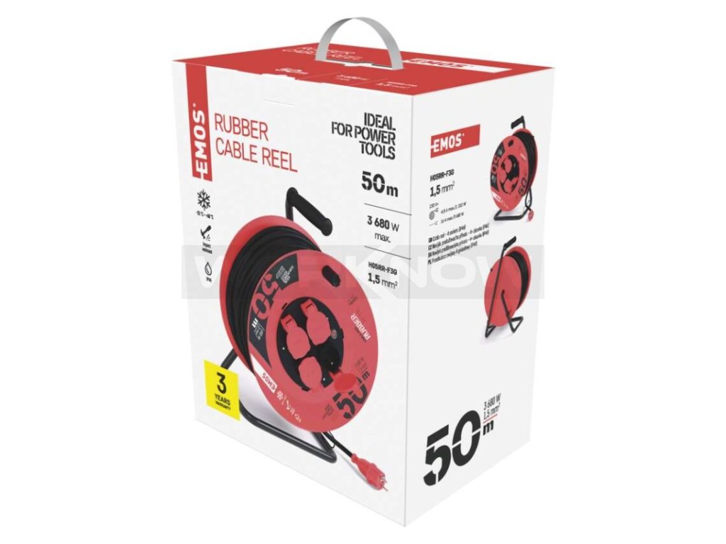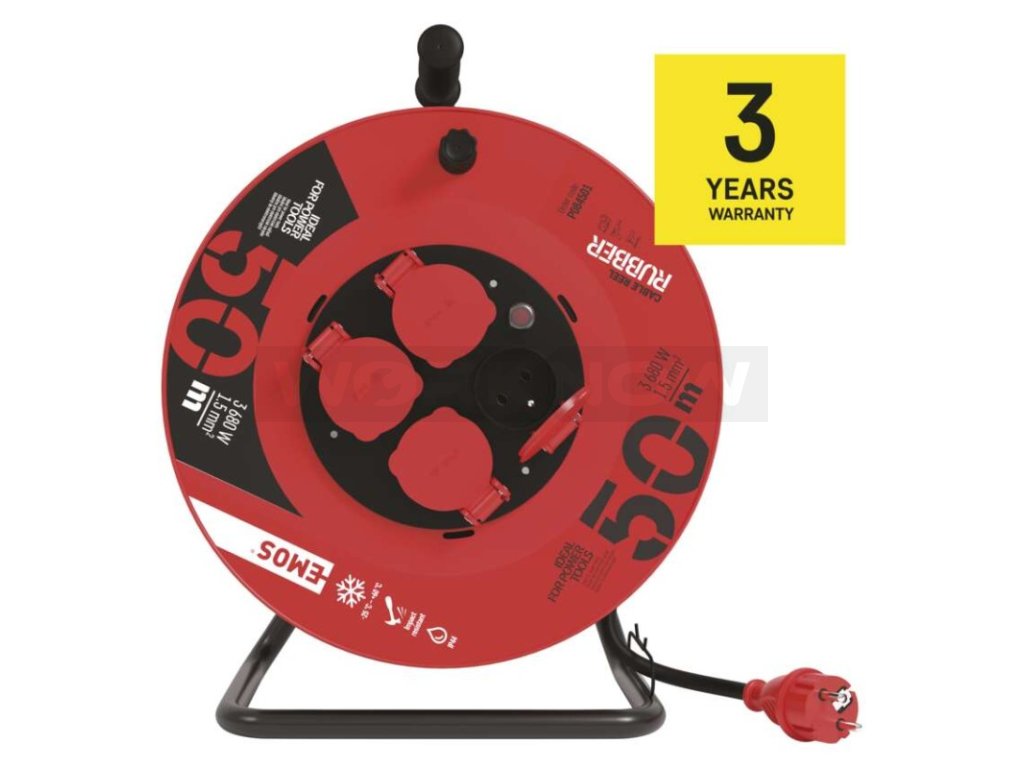 Prodlužovací kabel na bubnu EMOS, o průřezu vodiče 1,5 mm2 a délce 50 m je celý vyroben z kvalitních materiálů a obstojí i při práci ve venkovním prostředí. Díky otáčejícímu bubnu se práce s ním stává pohodlnou, rychlou a také velmi jednoduchou.