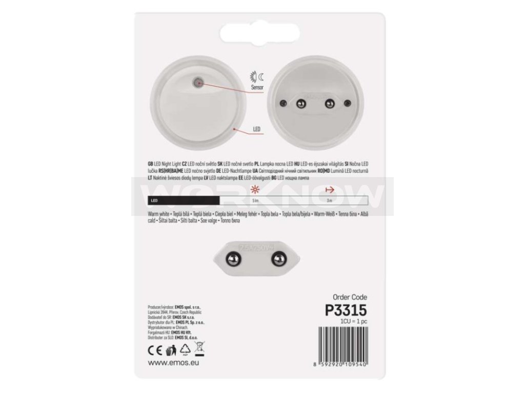 Tmy se již není třeba obávat díky nočnímu světlu EMOS P3315. Jednoduše ho zastrčíte do zásuvky a světelný senzor se sám automaticky postará o jeho zapnutí a následně i vypnutí dle intenzity okolního světla. Malé rozměry a jednoduchý nadčasový design z něj pak dělají praktického pomocníka do každé domácnosti.