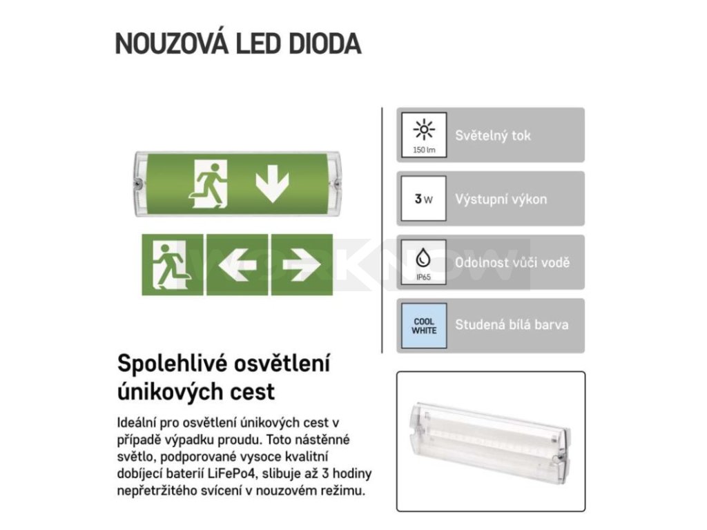 | Výstupní výkon v nouzovém stavu: | 3 W |