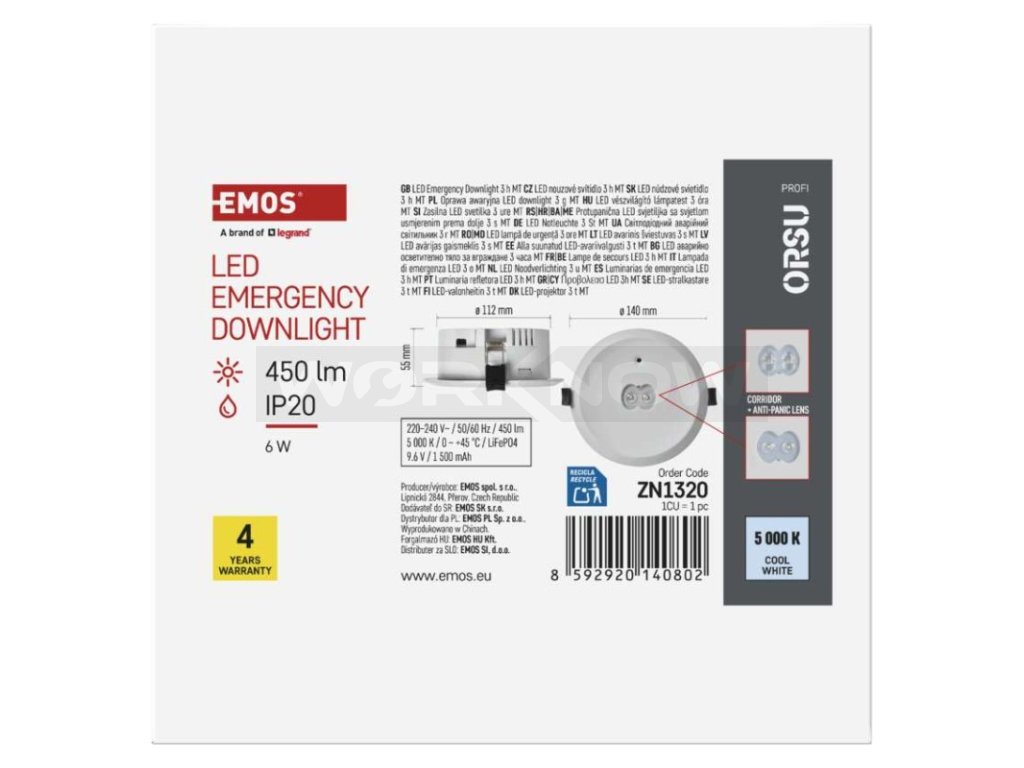 Nouzové svítidlo ORSU 6W 450lm 3h MT