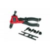 Profesionální nýtovací kleště na nýtovací matice / maticové nýty. Délka 200 mm. Pro matice M3, M4, M5, M6 z materiálů: hliníkové, mosaz, ocelové a z nerezové oceli. Součástí jsou i nýtovací adaptéry 4 ks. Kleště jsou vyrobeny z materiálu Cr-Mo, karbonové oceli a PVC. Pomocí nýtovací matice v zanýtovaném spoji vytvoříte neporušený závit, na který můžete snadno připevňovat další komponenty.