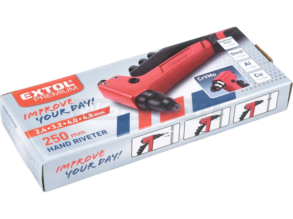 | Doplňující parametr: | pro trhací nýty 2,4-3,2-4,0-4,8mm z materiálů Al, měď, ocel, nerezová ocel |