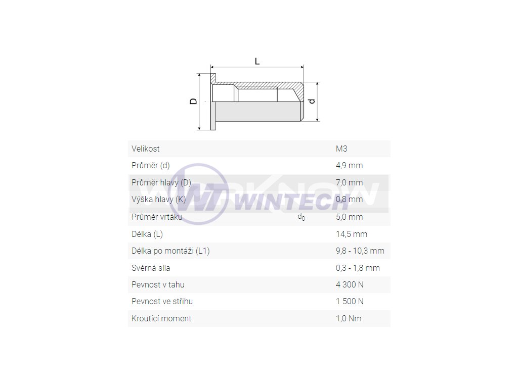Kategorie: | Nýtovací matice s plochou hlavou uzavřené |