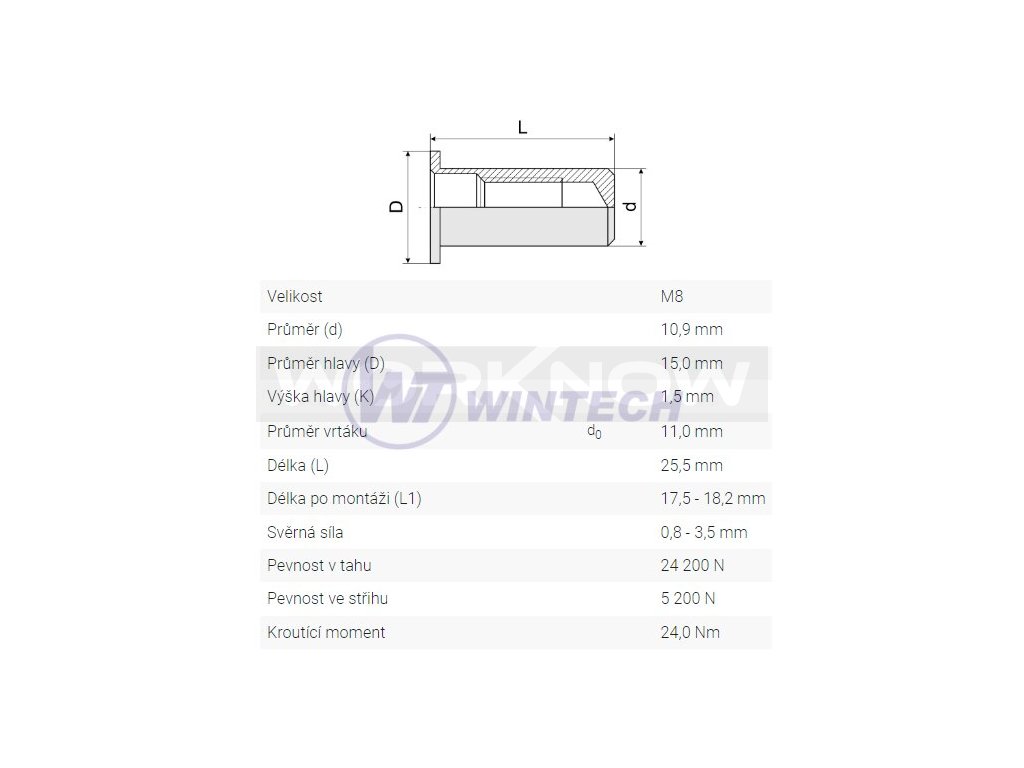 | Kategorie: | Nýtovací matice s plochou hlavou uzavřené |