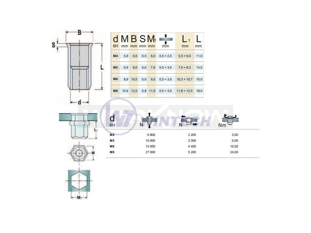 Kategorie: | Nýtovací matice se zápustnou hlavou, hexagonální |