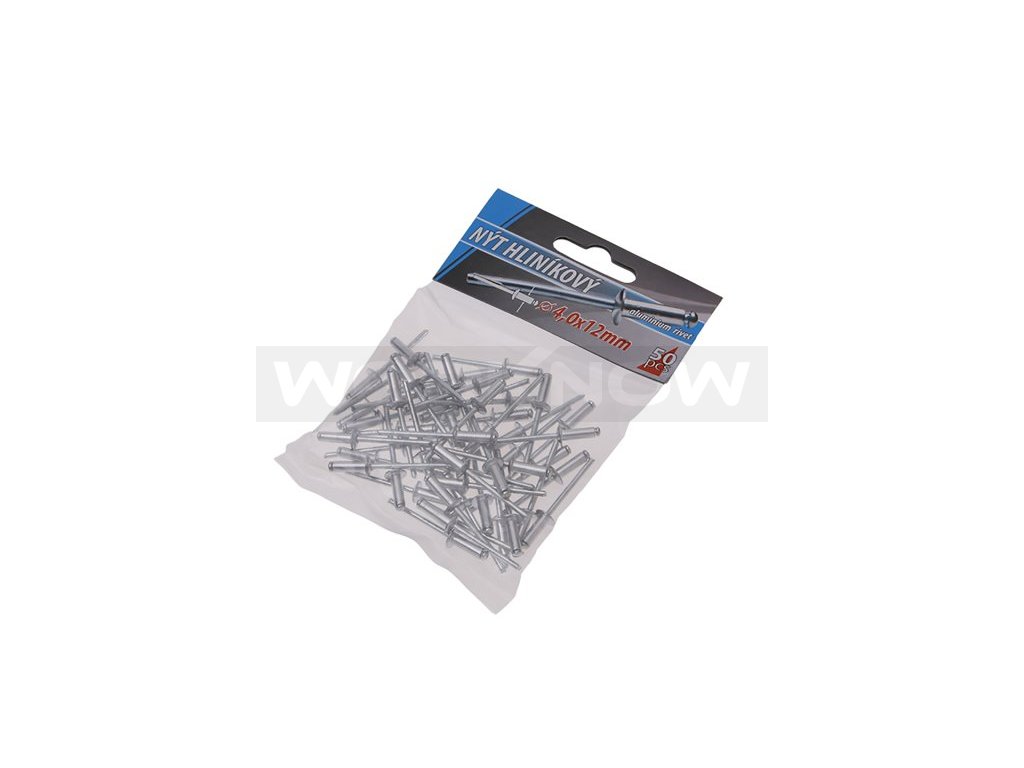 Klasické trhací slepé aluminiové nýty průměr 4,0 mm délka 12 mm v malém balení 50 kusů, vhodné pro malospotřebitele.Doplňkové parametry