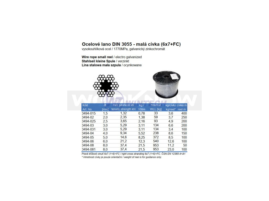 Ocelové lano DIN 3055 (6x7) 3,0x200m
