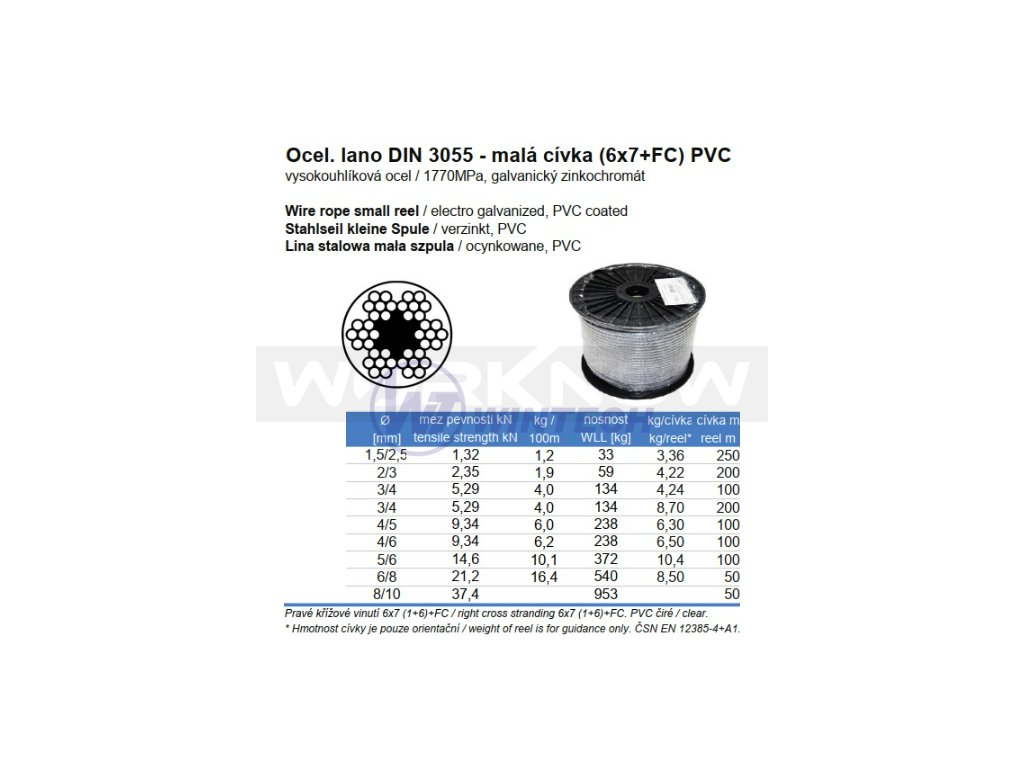 Ocelové lano DIN 3055 v PVC 3/4x2000