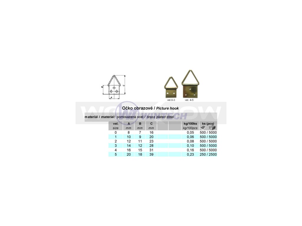 Očko na obrazy-trojhranné 10x9x20mm