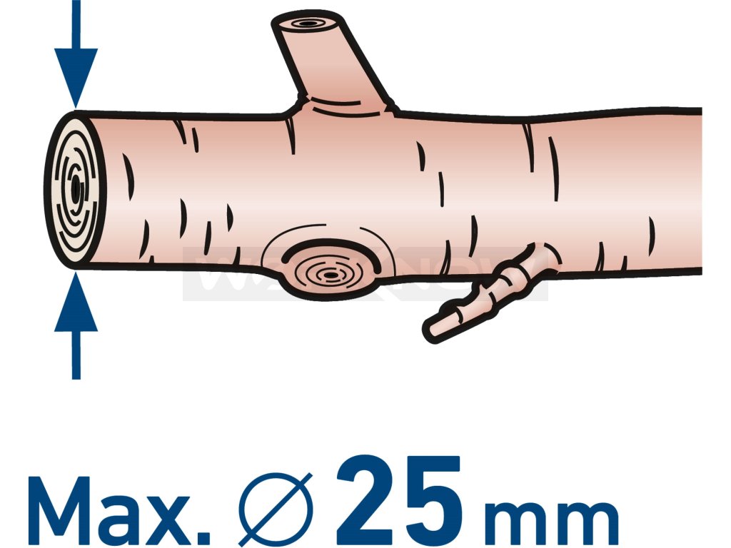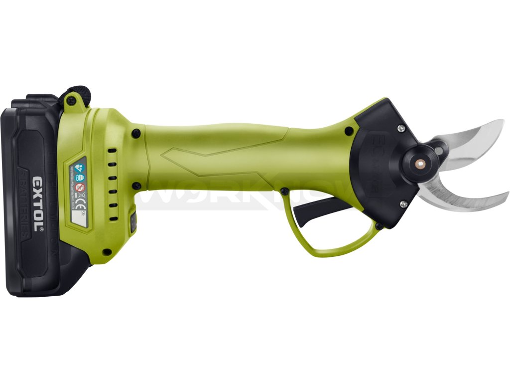 Zahradní aku nůžky umožňují snadné stříhání větví stromů a keřů a stonků rostlin o průměru do 25mm. Nůžky jsou poháněné nejmodernějším „brushless" motorem. Tento nový typ motoru má vyšší životnost, je výkonnější a má menší spotřebu el. energie než klasické motory s uhlíkovými kartáči. Díky funkci elektronického nastavení vzdálenosti stříhacích břitů dle průměru větví, si můžete upravit parametry podle toho co stříháte, což urychluje práci a snižuje spotřebu a zajišťuje delší výdrž baterie. Tato vzdálenost lze nastavit na 10, 15 nebo 25mm. Stříhací čepele se mohou brousit a jsou snadno vyměnitelné. Při nečinnosti se nůžky uspí, aby šetřili baterii. Akumulátor lze díky použité technologii kdykoliv dobíjet, aniž by se tím snižovala jeho kapacita, velmi pomalu ztrácí energii vlivem samovybíjení a proto vydrží dlouho nabitý a připravený k použití.- stříhání do 25mm