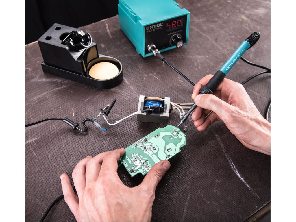 - pogumovaná rukojeť páječky zajišťuje příjemné držení při práci a zamezuje sklouzávání prstů při držení