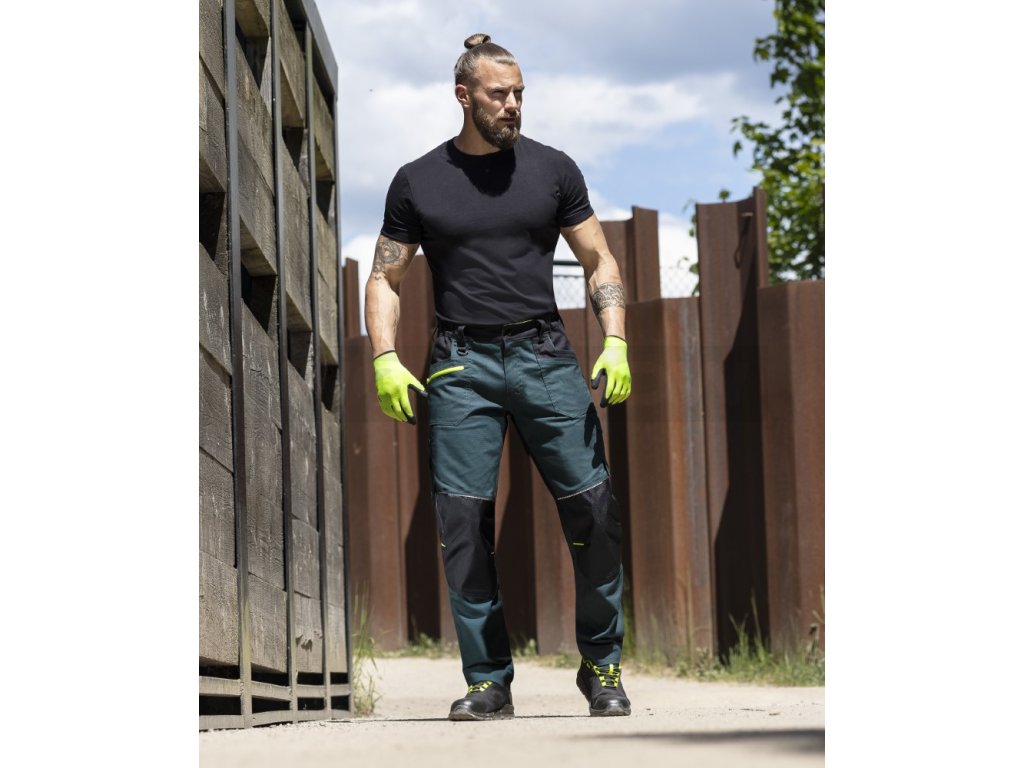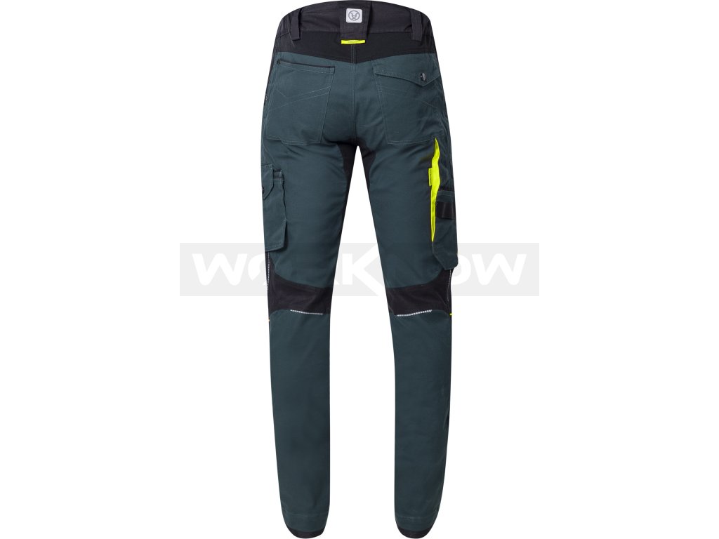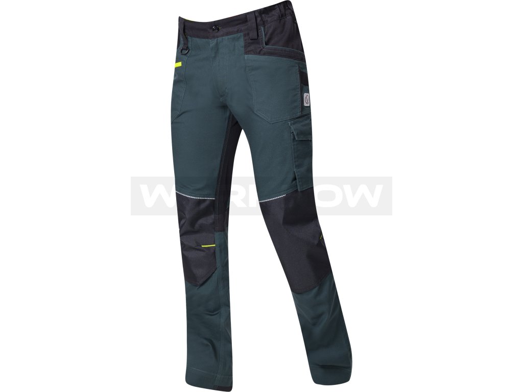 - kalhoty jsou vybaveny D kroužkem na karabinu, 2 hlubokými průhmatovými kapsami zpevněnými materiálem Oxford, 1 přední zipovou kapsou, 1 přední nářaďovou kapsou s širokým poutkem