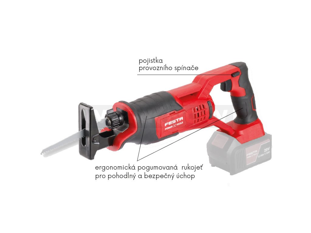 - FESTA SHARE 20 V - AKU pila ocaska je součástí skupiny výrobků s možností využívat Li-ion batarie 2.0 Ah a 4.0 Ah ve všech strojích takto označených